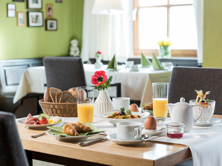 Von der engen regionalen Verbundenheit profitieren auch unsere Gäste, da im Restaurant vorwiegend heimische Produkte Verwendung finden und die hauseigene Metzgerei frische Qualität garantiert. Die Speisekarte mit moderner, raffinierter, aber auch klassischer bayerischer Küche folgt der Saison und die Getränkeauswahl lässt keine Wünsche offen.