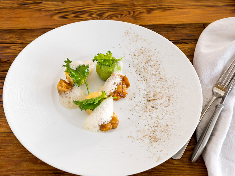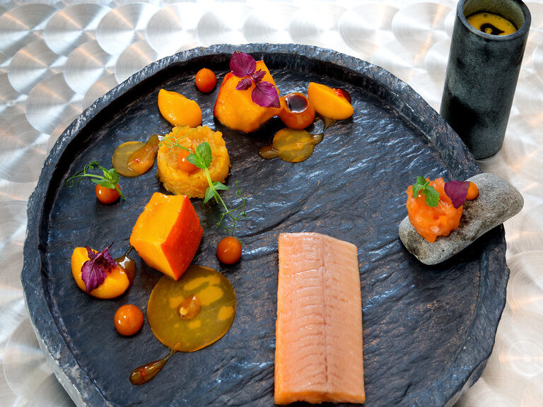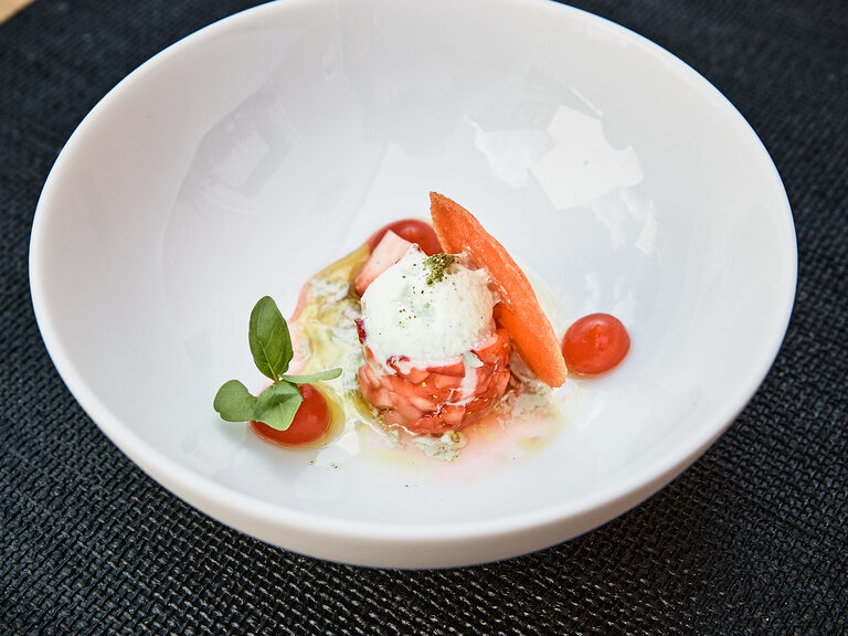 Im Angebot sind sowohl raffinierte Menüs - auch für Vegetarier - als auch feine Gerichte à-la-carte. Dass nur Spitzenerzeugnisse, teils aus familieneigener Produktion, Verwendung finden, ist für Christian Fleischmann und sein Team selbstverständlich. Edle Weine ausgesuchter Winzer runden die Gaumenfreuden harmonisch ab.