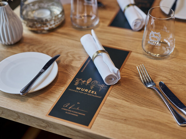 In unserem Restaurant Wurzel schaffen wir mit nur sechs exklusiven Tischen eine intime und gemütliche Atmosphäre. Natürlich könnt ihr im Restaurant Wurzel nicht nur das exklusive Menü des veganen Konzepts genießen, sondern auch à la carte von unserer Weißes Roß Speisekarte wählen – für noch mehr Flexibilität und Genuss. Lasst euch von der raffinierten Auswahl an Gerichten überraschen, die mit frischen und regionalen Zutaten zubereitet werden.